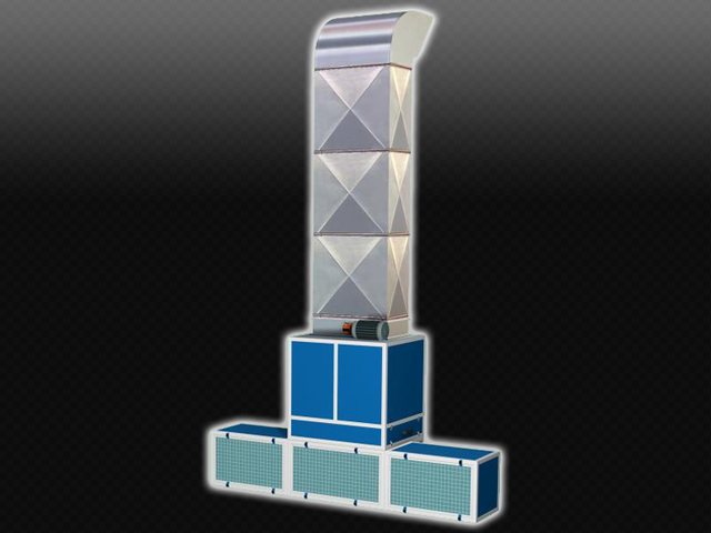 The air enters the working chamber unfiltered through an open face. The particulate is captured by filter bank and 100% exhausted through exhaust duct and stack into the atmosphere. It is economical solution to remove over spray.